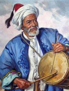 طالبين منهم أن يوحدوا الله ويضربون على “طار” ضربات متوالية، حتى يسمعهم النائمون، فيستيقظوا من نومهم لتناول السحور وتختلف