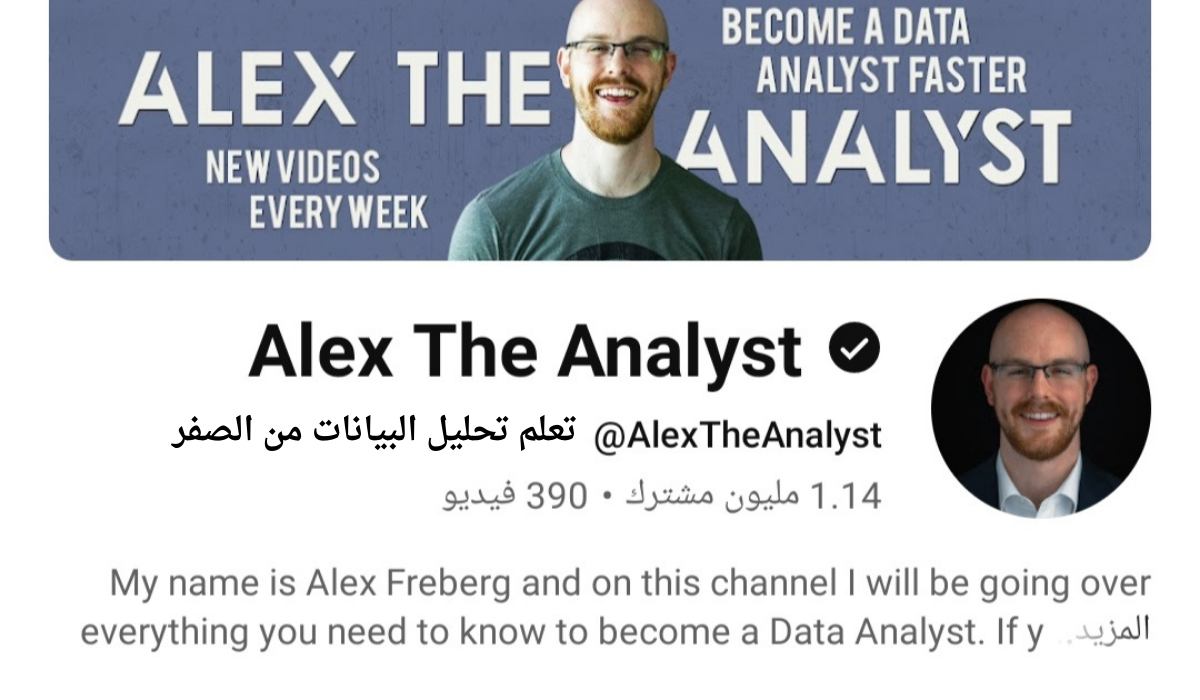 قناة Alex The Analyst من أفضل القنوات المتخصصة في تعلم تحليل البيانات من الصفر ففي هذه القناة تم شرح كافة الأدوات المتعلقة بمجال تحليل البيانات في فيديوهات بسيطة بمعلومات دقيقة تساعدك على إتقان المجال بكل سهولة ويسر، و مع كثرة الطلب على هذا المجال فإنة يجب عليك تعلم تحليل البيانات أو على الأقل معرفة الأساسيات الخاصة بالمجال.